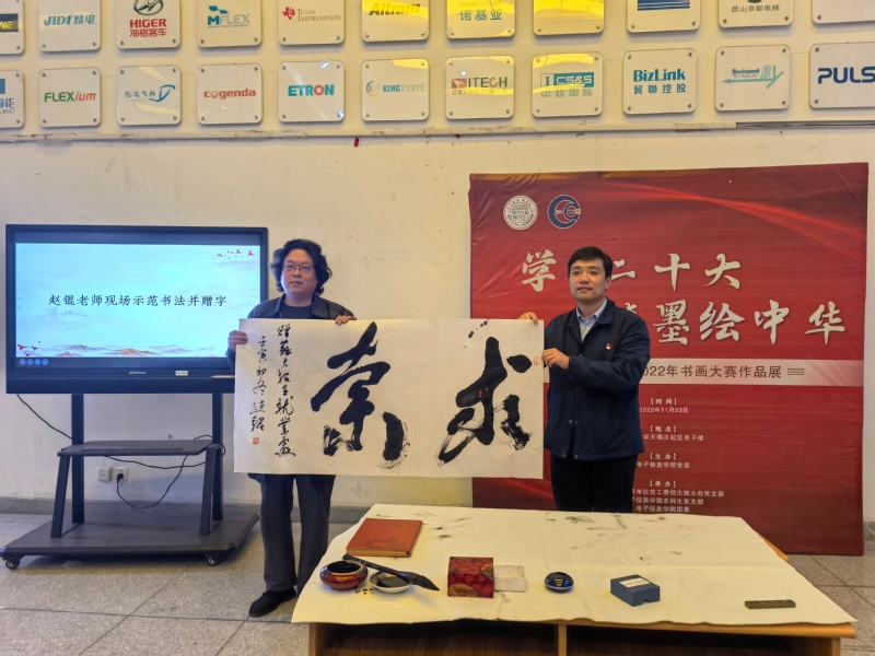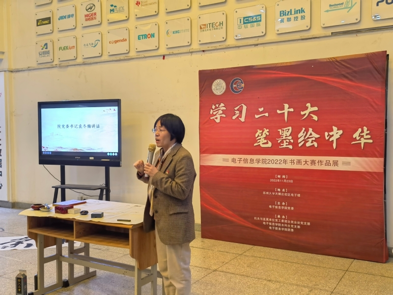 出席本次书画展开幕式的领导嘉宾有:中国书法家协会会员、苏州市书协副主席、吴门书道馆副馆长赵锟,国产无码 招生就业处党支部书记、处长靳葛、副处长张芸、副处长李季以及支部全体党员老师,国产无码 党委书记袁冬梅、党委副书记、副院长黄远丰、本科生党支部书记李莹以及支部全体师生党员。此外,本次大赛参赛同学、“苏小招、苏小就”两个学生社团代表、国产无码 书画爱好者也参加了本次活动。活动由国产无码 本科生党支部学生党员蒋丽莲主持。