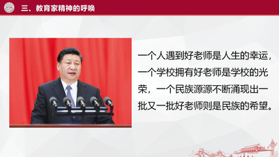 今年的全国两会上,全国人大代表提出了要提炼和弘扬新时代教育家精神,这是教育强国的内在需要、时代需要、迫切需要。教育是国之大计,党之大计。教师是立教之本,强国必先强教,强教必先强师,强师必先铸魂。有优秀的教育家精神的传承和弘扬才能够涵养优良师德师风,传承优秀教育思想文化,从而实现科教兴国,人才强国。