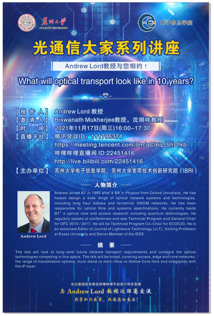 光通信大家系列讲座|Andrew lord教授与您相约 !