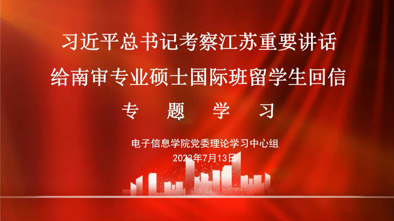 沈纲祥院长领学了习近平总书记在江苏考察时发表的重要讲话精神,他指出习近平总书记亲临江苏考察发表重要讲话作出重要指示亲临苏州,视察苏州工业园区发展,来到华兴源创科技股份有限公司考察,了解高新技术企业研发生产情况,走进平江历史文化街区查看古街风貌,体验非遗文化,与百姓亲切交流,这既是江苏发展历程中具有里程碑意义的大事,也是苏州发展历程中具有里程碑意义的大事,充分体现了总书记和党中央对江苏工作、对苏州工作的高度重视和巨大关怀。习近平总书记的重要讲话江苏在推进中国式现代化建设进程中具有思想引领和科学指导作用,也为高校今后工作指明方向提供了根本遵循。倪锦根副院长领学了习近平总书记给南审专业硕士国际班留学生的回信精神