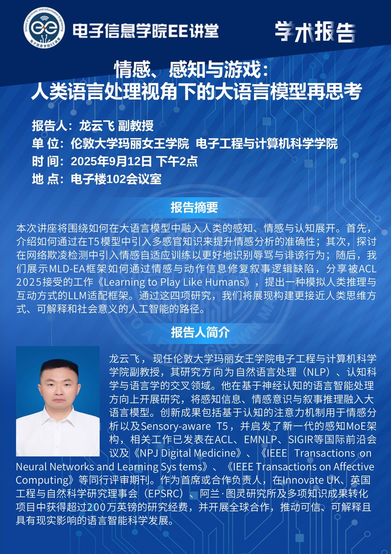 【学术报告】情感、感知与游戏:人类语言处理视角下的大语言模型再思考