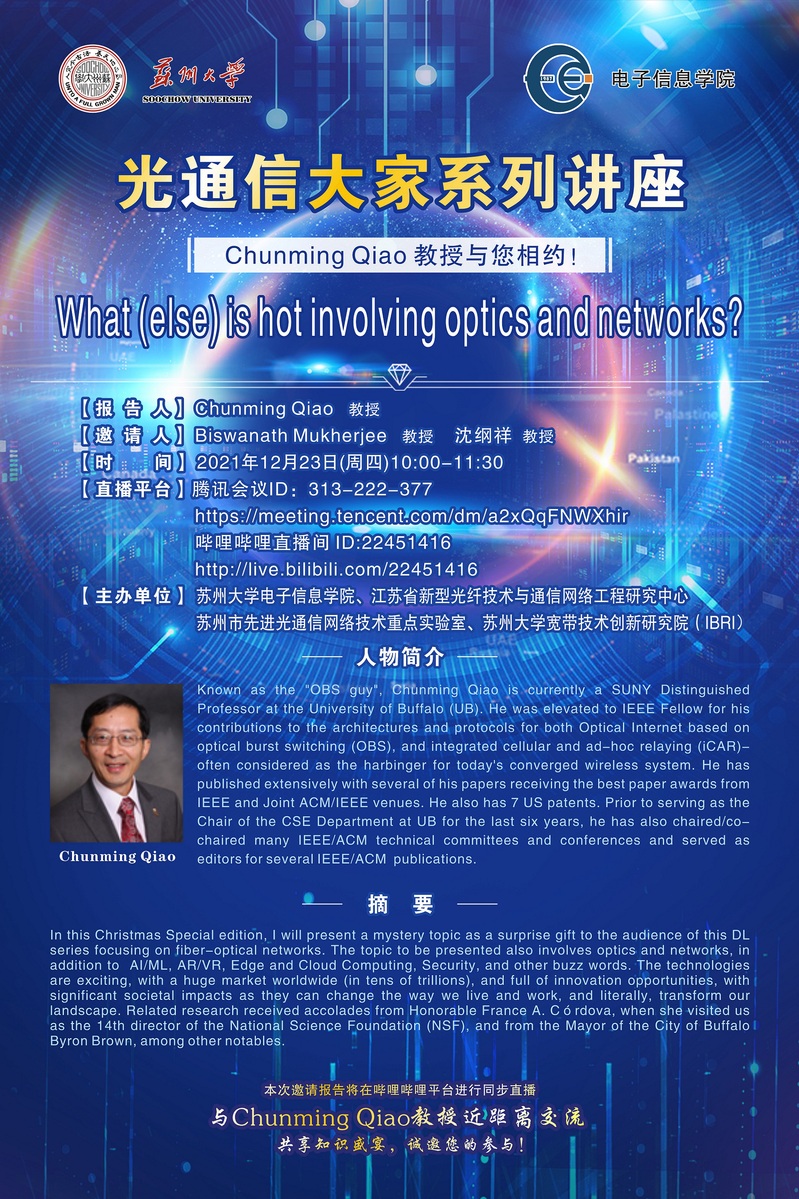 光通信大家系列讲座|Chunming Qiao教授与您相约 !