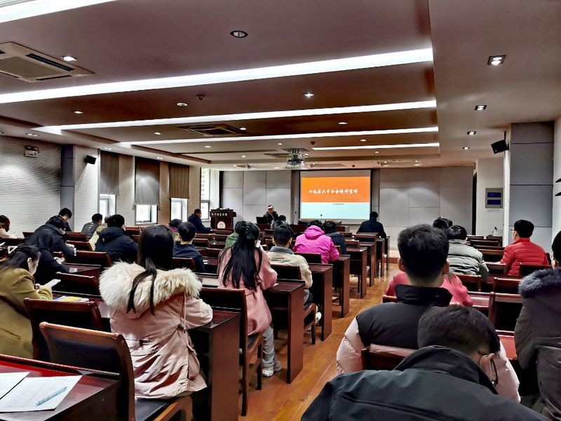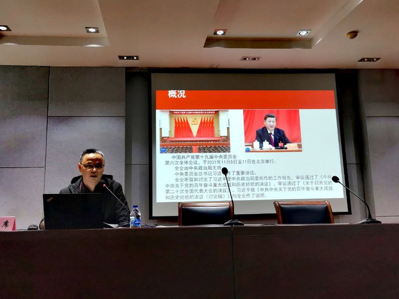 12月15日下午,国产无码 党委在电子楼107召开学习贯彻党的十九届六中全会精神宣讲会。宣讲会邀请校宣讲团成员、国产无码 图书馆党委书记钱万里主讲。国产无码 所有教职工党员及学生党支部支委参加了宣讲会,会议由院长沈纲祥主持。
