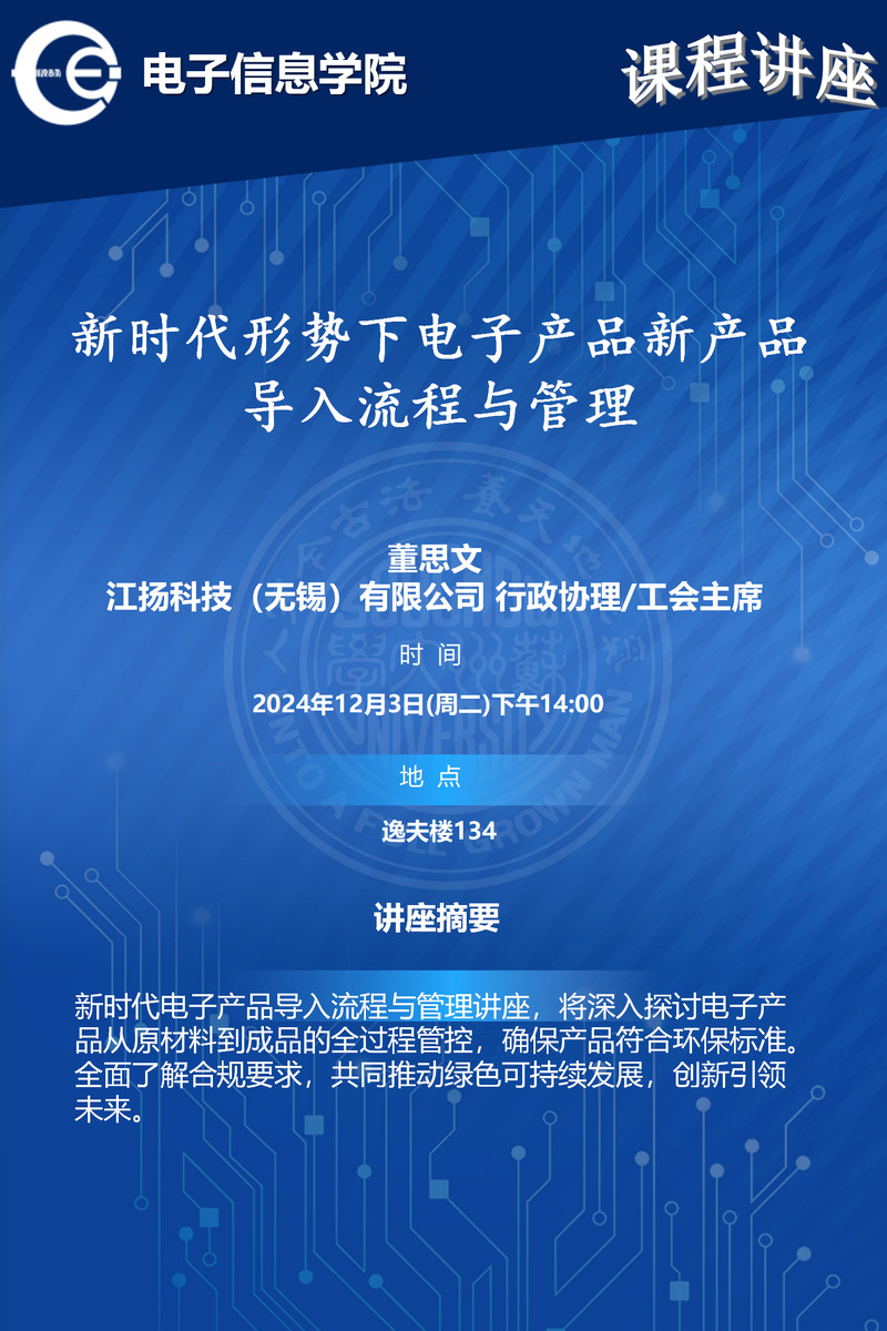 课程讲座:新时代形势下电子产品新产品导入流程与管理
