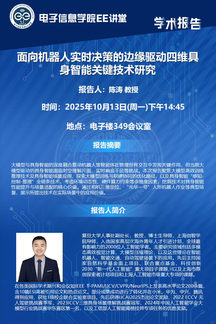 【学术报告】面向机器人实时决策的边缘驱动四维具身智能关键技术研究