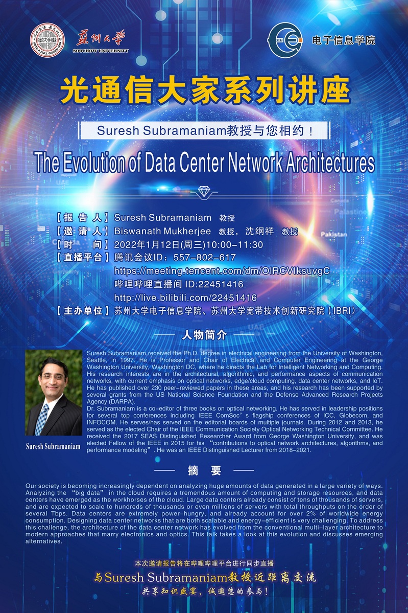 光通信大家系列讲座 Suresh Subramaniam教授与您相约 !