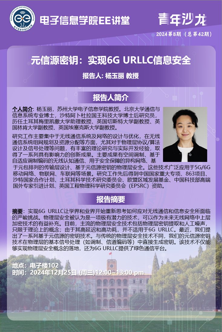 第42期青年沙龙|元信源密钥:实现6G URLLC信息安全