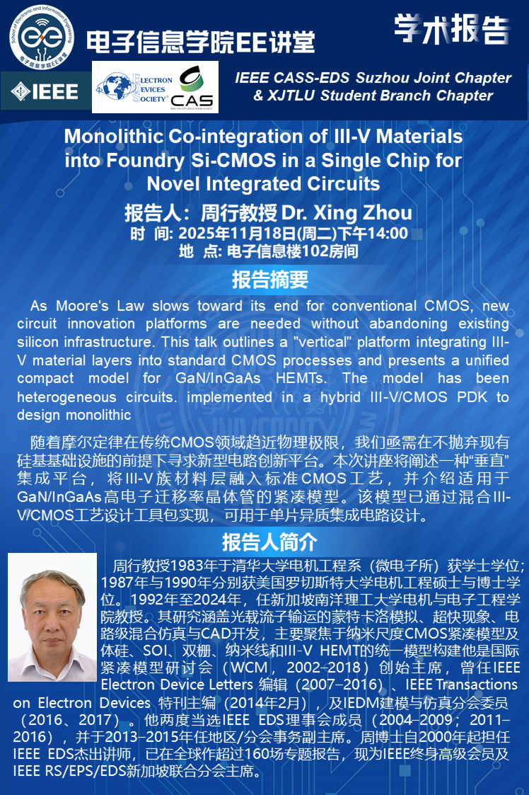 【学术报告】Monolithic Co-integration of lll-V Materials into Foundry Si-cMos in a Single chip for Novel Integrated Circuits