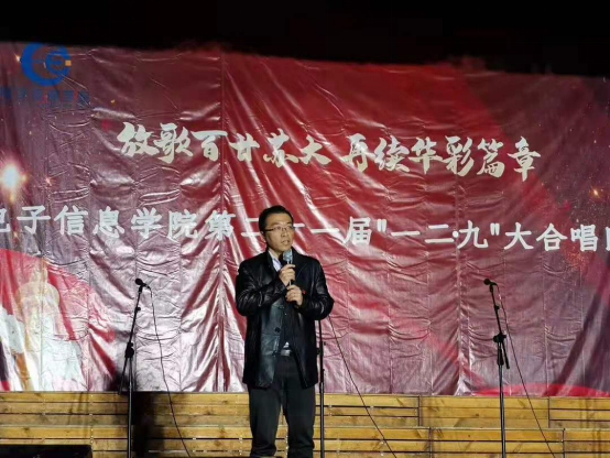大合唱比赛在院党委书记胡剑凌老师的致辞中拉开了帷幕。胡书记从个人对“一二·九爱国主义精神的理解讲起,赋予了同学们殷切的期望:作为新时代青年,电院学子应不断增强集体荣誉感,在团结协作的基础上,传承好“一二·九”爱国主义精神,让“一二·九”爱国主义的火苗生生不息,将“一二·九”爱国主义的使命牢记于心!