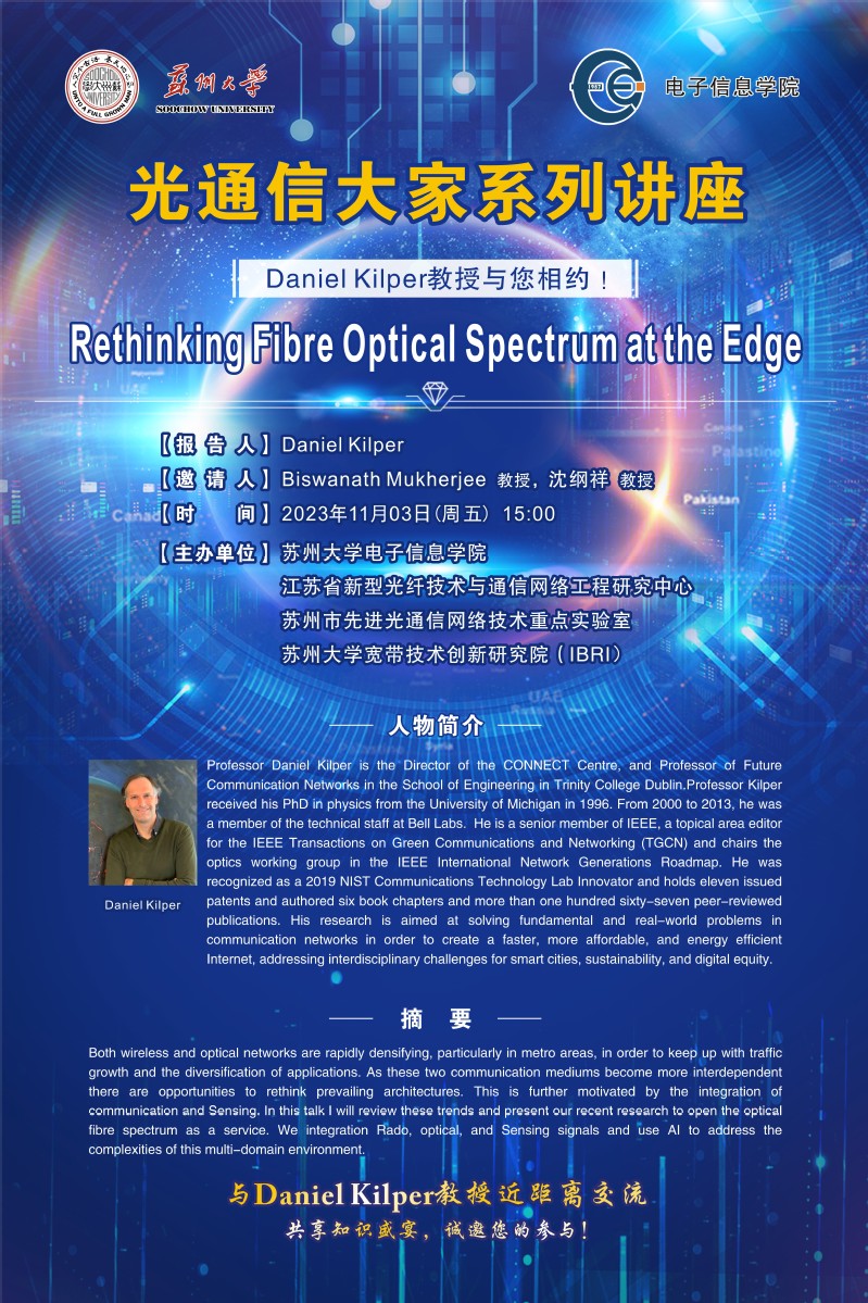 【光通信大家系列讲座】Daniel Kilper教授与您相约!