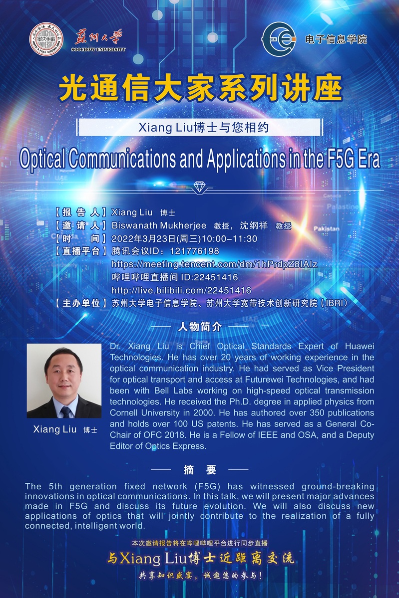 光通信大家系列讲座| Xiang Liu博士与您相约 !