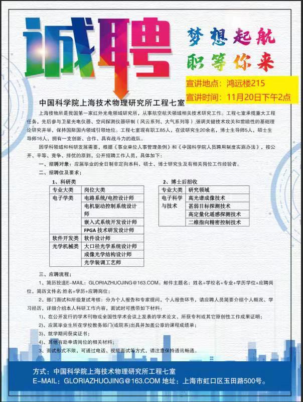 中国科国产无码 上海技术物理研究所工程七室招聘