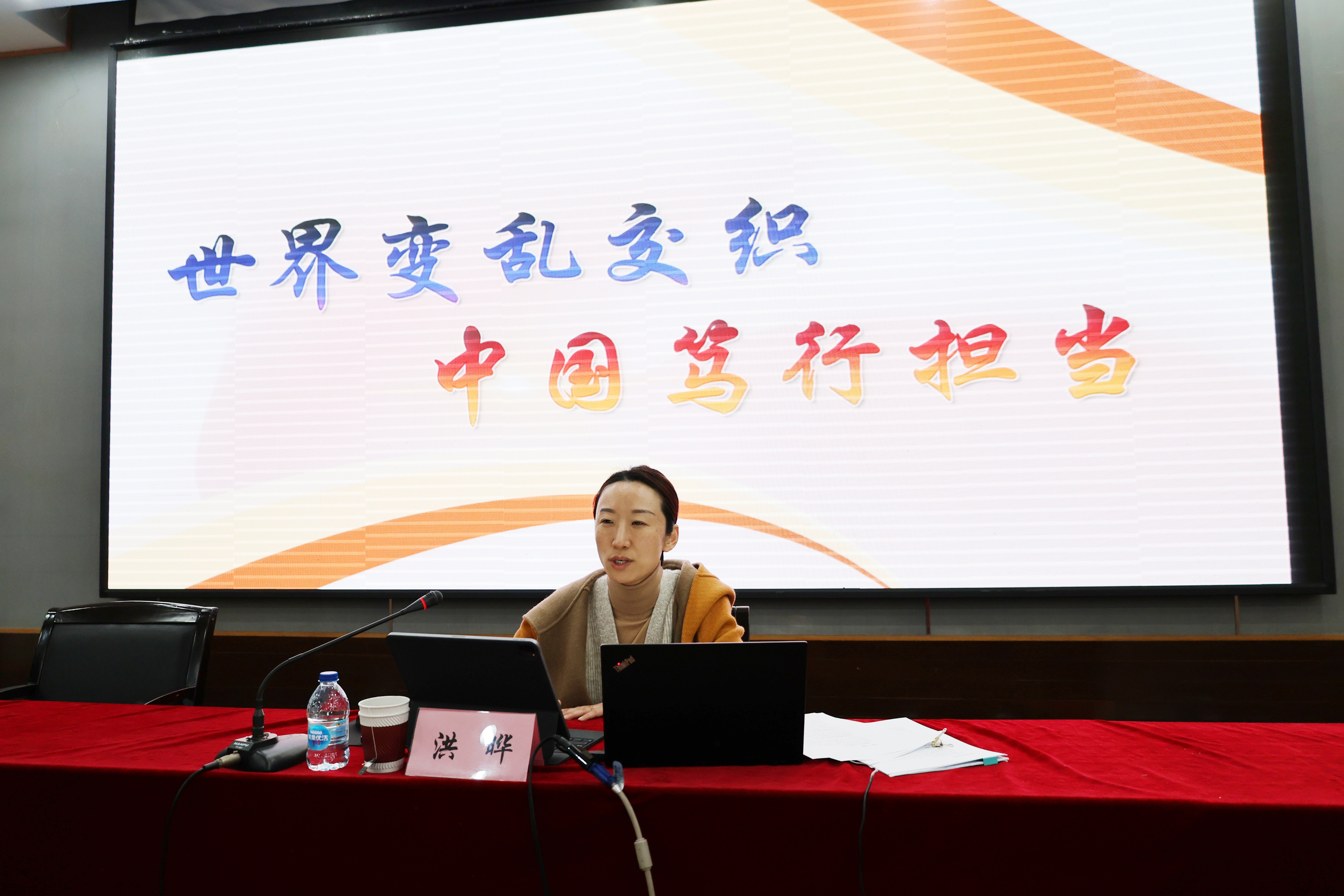 洪晔围绕“变革动荡持续演进、大国关系深刻调整、中国智慧彰显担当”三个方向进行讲述。地缘政治局势持续紧张、世界经济复苏乏力、全球治理体系受到冲击、粮食和能源等危机叠加加速了“变革动荡持续演进”。大国关系也正在经历深刻的调整,国际上的矛盾和冲突将对国际秩序和全球稳定产生重大影响。作为负责任的大国,中国一直为维护世界和平与发展不懈努力,从全球发展倡议,到全球安全倡议,再到全球文明倡议,中国始终胸怀天下、心系人类前途命运,为破解时代难题源源不断贡献中国智慧,彰显“为人类谋进步、为世界谋大同”的使命担当。