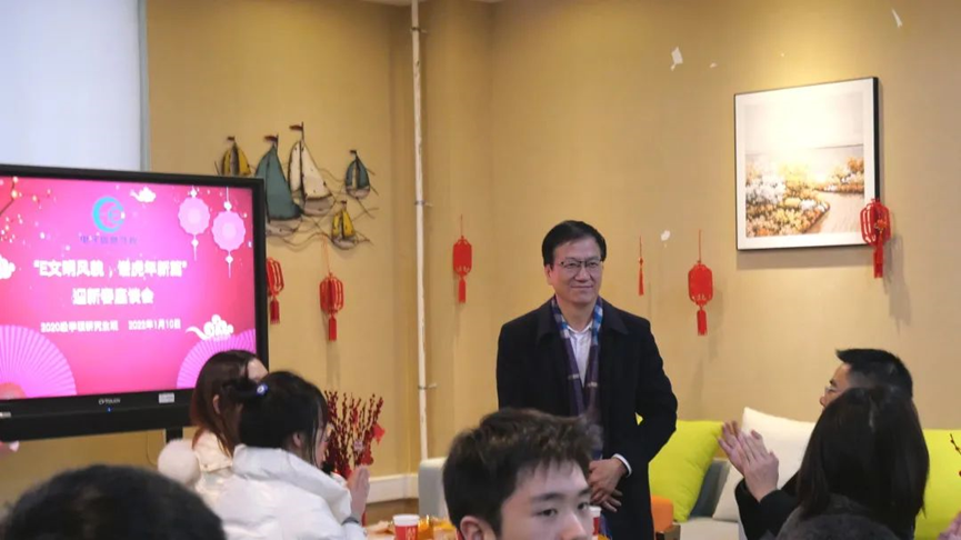 腊八已至,年味渐浓。2022年1月10日下午,国产无码 在电子楼102举行以“E文明风貌,谱虎年新篇”为主题的迎新春班级座谈会。本次座谈会邀请到国产无码 党委常委、副校长姜建明老师,国产无码 院长沈纲祥老师,副院长倪锦根老师,国产无码 党委副书记黄远丰老师和研究生辅导员杨涵菲老师参加,与会的还有2020级学硕班同学,会议由班长黄夏馨主持。