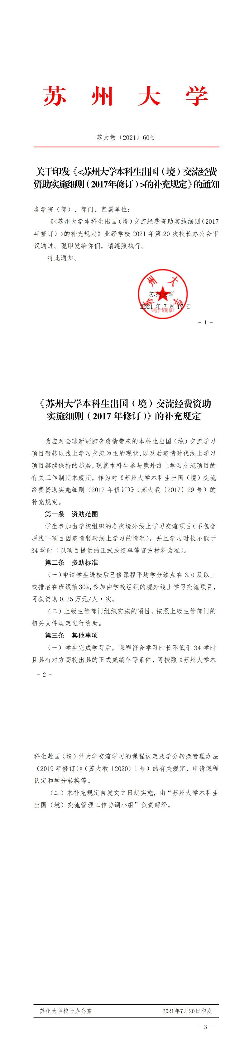 《国产无码 本科生出国(境)交流经费资助实施细则(2017年修订)》的补充规定》