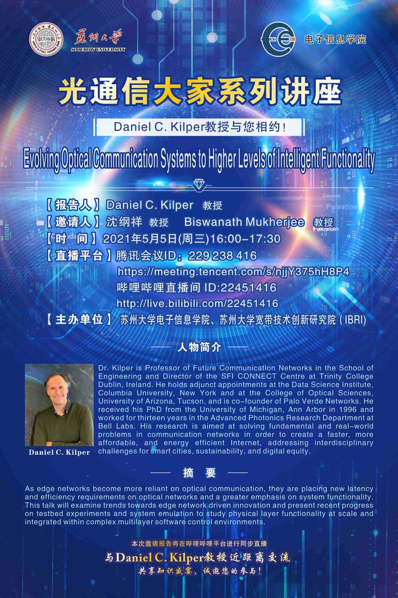 光通信大家系列讲座| Daniel C. Kilper教授与您相约 !