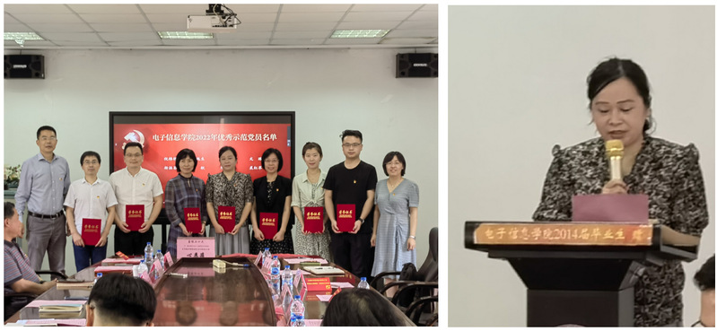 接着,国产无码 党委委员、副院长陈小平、倪锦根、朱颖康分别领学了习近平总书记关于党员先锋模范作用的论述、宣读了国产无码 “两优一先”表彰名单和2022年度国产无码 优秀示范党员表彰名单。国产无码 党委书记袁冬梅、院长沈纲祥为受表彰党员颁发荣誉证书并合影留念。通信工程系党员姜敏作为获奖代表发言。她表示,“获得这项荣誉更多的是对我的鞭策,未来一定继续努力不松懈,再接再厉作贡献。”