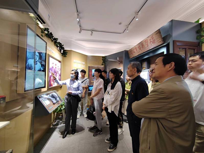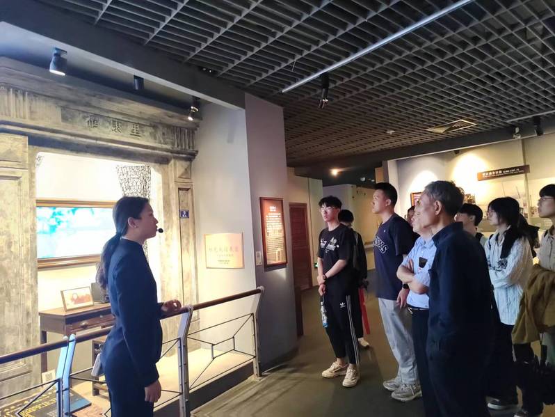 下午,参观师生一行穿过虹口区黄渡路一条狭长的巷子,来到李白烈士最后居住、工作和被捕的地方。故居的一二楼陈列着李白烈士生前使用过的物件,包括离开延安时穿的军装、来上海时拎的皮箱、抗战时期使用的军用电台部件、在狱中写给家人的最后一封信等等,真实展现了烈士革命斗争的光辉一生。三楼复原区,在不到两平方的小厨房里,李白蹲在小板凳上收发电报的场景犹在眼前。“电台重于生命”、“战斗在敌人心脏”,一张张照片、一幅幅场景,不屈不挠、执着坚定的共产党员形象立体地展现在大家面前,党员师生们纷纷表示,长河无声,岁月如梭,电波不逝,信念永存。