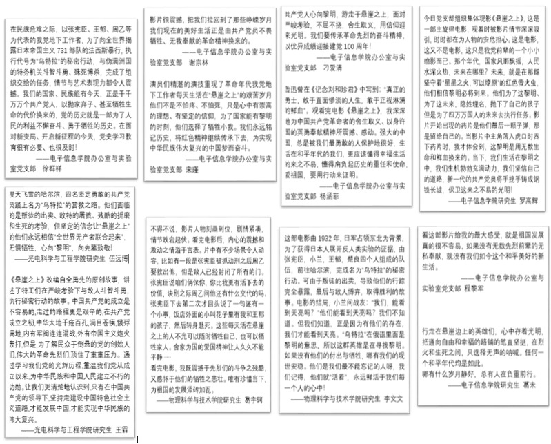 习近平总书记说“历史是最好的教科书。对我们共产党人来说,中国革命历史是最好的营养剂。“此次活动不仅是一次观影,也是一堂别开生面的党课。影片结束后,不少师生仍红着眼眶讨论着剧情,为抗战年代每天生活在“悬崖之上” 的我党地下工作者坚不可摧的革命精神所折服。国产无码 办公室与实验室党支部党员徐群祥老师说:“我们的国家、民族能有今天,正是千千万万个共产党人,以抛家弃子、甚至牺牲生命的代价换来的,党的历史就是一部为了人民的利益不懈奋斗、勇于牺牲的历史。在面对新变局、开启新征程的今天,党史学习教育很有必要、也很及时!”。
