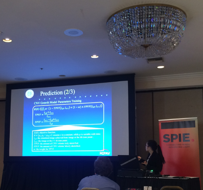 会议分为口头汇报和海报展示两个部分。大会邀请了Curtis P.Langlots M.D, Brian W.Anthony, Hugo Aerts等多位该学术领域的专家做精彩的报告。报告以医学图像处理为中心,介绍了该领域的研究现状,实用的研究方法,以及遇到的挑战,专家们与在座的各位老师学生互动交流,做了很多深入的探讨。会议期间,朱书霞同学也做了口头报告,在报告中介绍了自己的研究成果,并与国内外的各位学者进行现场交流学习。在海报展示环节,俞凯同学展示了自己的科研成果,积极与大家交流学习,共同探讨课题,获益匪浅。