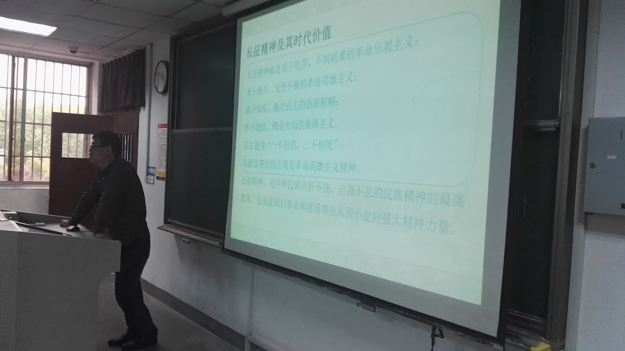 首先,黄书记从今天发生的热点事件引入,也就是国产第一艘航空母舰下海,他表示这是一件令人热血沸腾的大事。随后他谈到了近几年来党的反腐斗争一直持续不断,高压态势一直存在,习近平主席的从严治党理念永远都在坚持着。随后,黄书记就进入了今天的主题:讲党史。黄书记从近代中国的发展时期来讲述中国共产党的发展与成长,分别讲述了我党在旧民主革命时期,新民主主义革命时期,以及新中国的社会主义革命时期的作为和贡献。其中,黄书记着重讲了在这几个时期中所孕育而出的精神,比如说长征精神,这是红军在两万五千里的行军过程中克服各种困难形成的精神,它虽然已经过去多年,但是仍然具有时代价值。