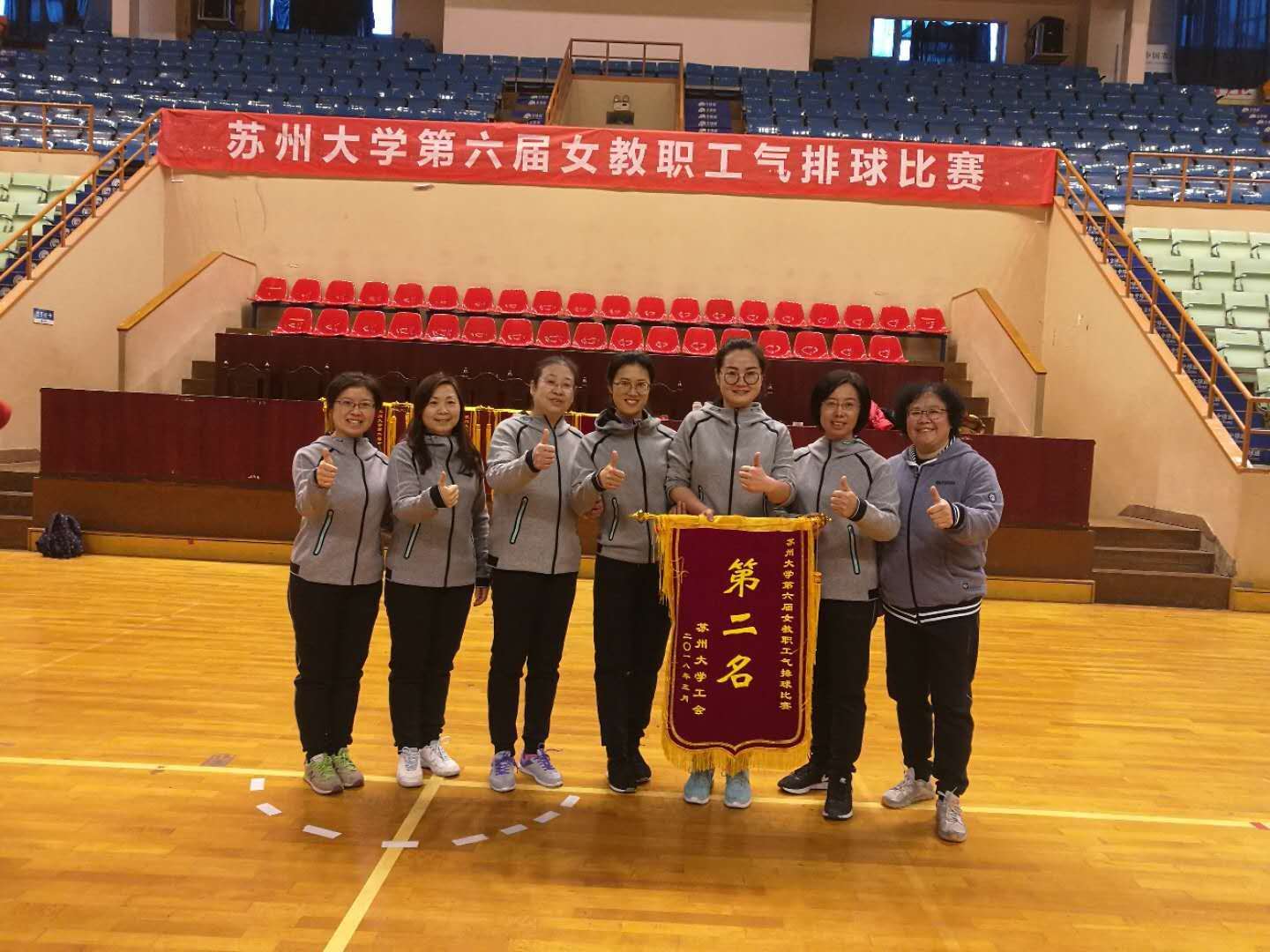 女教工气排球队功亏一篑,蝉联全校此项比赛第二名,但队员们仍然觉得赛出了水平,更赛出了风格,为国产无码