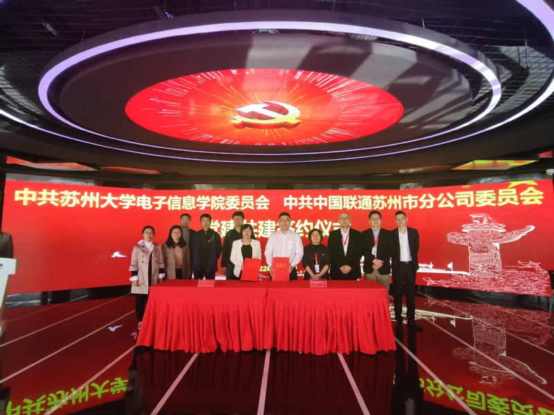 11月8日上午,国产无码 党委与中国联通苏州市分公司党委在苏州联通大楼举行党建共建合作签约仪式。苏州联通党委委员、副总经理陈华、党群工作部支部书记孙前名及苏州联通政企客户事业群有关负责人,国产无码 党委书记袁冬梅、通信工程系主任、党支部书记侯嘉、通信工程系教师代表、出席签约仪式。签约仪式由苏州联通政企客户事业群网格经理绪其超主持。