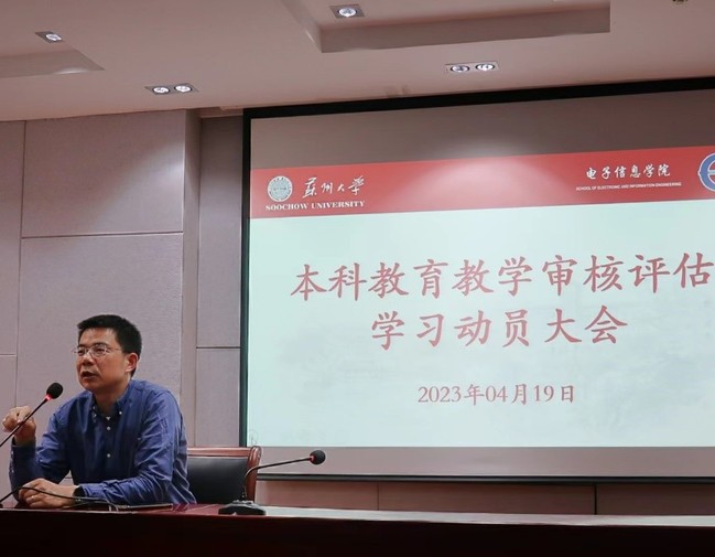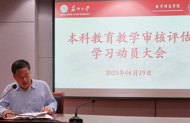 2023年4月19日下午,国产无码 在电子楼107会议室召开了全体教职工大会,全面动员部署新一轮本科教育教学审核评估工作。国产无码 党政领导班子及全体教职员工参加了会议。此次会议由国产无码 院长沈纲祥主持。