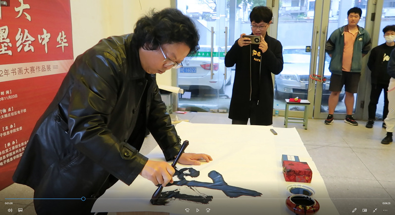 中国书法家协会会员、苏州市书协副主席、吴门书道馆副馆长赵锟点评获奖作品,他表示作品深情讴歌党带领中华儿女奋进新征程的伟大实践,展现可信、可爱、可敬的祖国形象,现场他还挥毫泼墨抒发对党的二十大胜利召开的喜悦之情。
