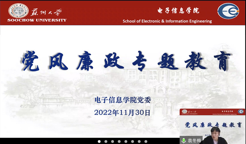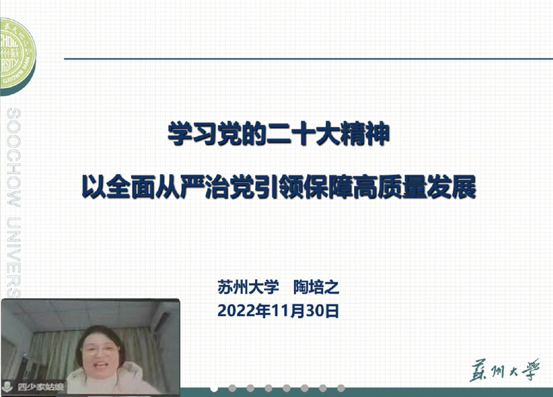 为深入学习宣传贯彻党的二十大精神,增强党员干部和广大教职工廉洁自律意识,筑牢拒腐防变的思想道德防线,结合国产无码 廉洁文化宣传教育月活动,11月30日下午,校纪委副书记陶培之应邀为国产无码 全体教职工党员作了题为《学习党的二十大精神以全面从严治党引领保障高质量发展》的专题讲座。因疫情防控要求,全院教职工党员线上聆听,讲座由国产无码 党委书记袁冬梅主持。