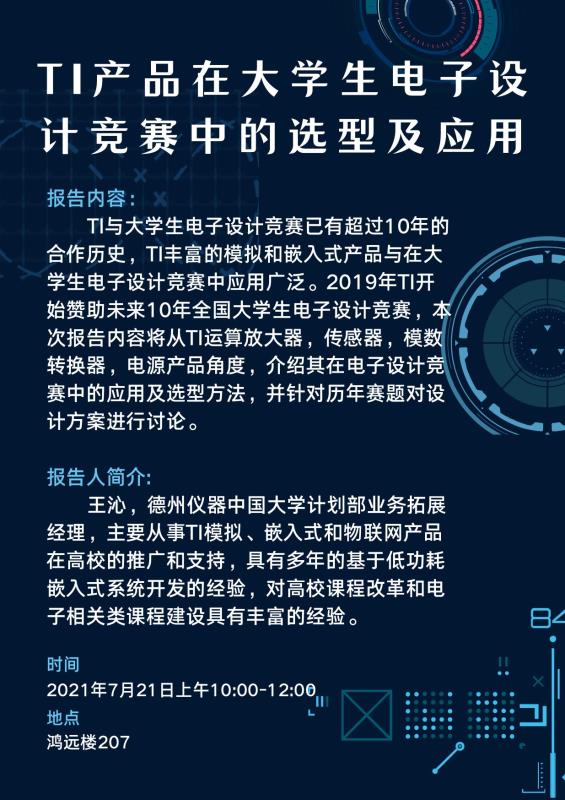 讲座:TI产品在大学生电子设计竞赛中的选型及应用